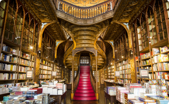 Para nós, esta é a livraria mais bonita do mundo. Todos os meses, milhares de pessoas visitam a livraria, deliciando-se com os pormenores da arquitetura neogótica que cobrem cada centímetro do edifício. Tão mágico, que não seria de admirar que inspirasse muitas obras.